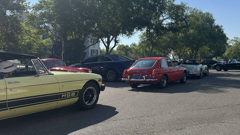 We arrived for the car show at 7:45 am and got the MGB-GT parked. Joel drove his triumph behind us on the way to the show. He parked his Triumph next to our MGB-GT. Right behind Joel were 4 DeLoreans. They majestically drove on to the show ground with their doors open. What a sight!! A few minutes later, Jon and Nancy entered the show ground and parked their MGB on the other side of the street. The show area was filling up fast.